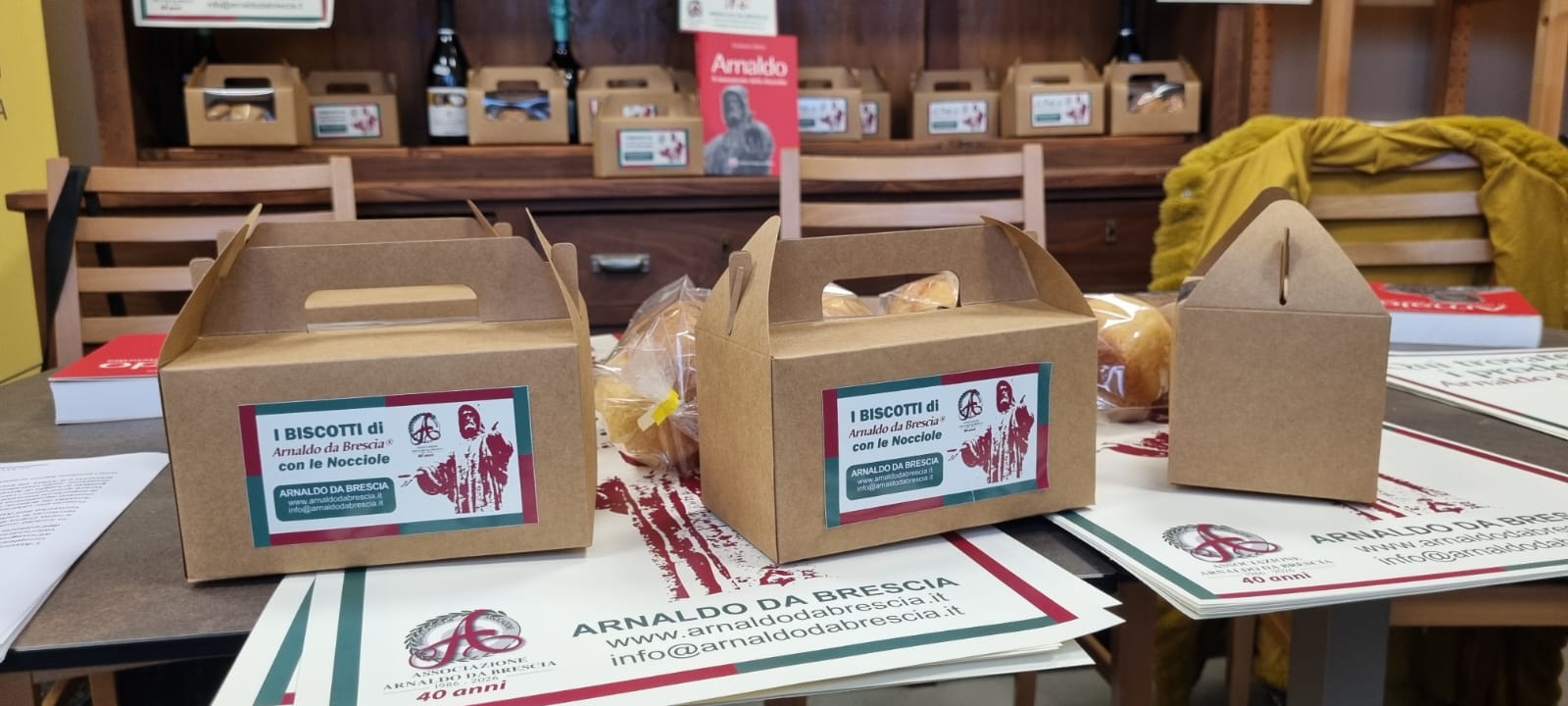 Proprio nella sua bottega, un ampio locale che funge sia da centro di produzione che da punto vendita, con tanto di angolo adibito a caffetteria, facendo fatica a tenere a bada i succhi gastrici prepotentemente stimolati dallo squisito profumo di farina, lieviti, vaniglie e mille altre bontà che si è tenuta la conferenza stampa indetta dall’Associazione Arnaldo da Brescia nell’intento di illustrare al grande pubblico quanto s’intende fare per festeggiare il proprio quarantesimo anno di attività al servizio di Brescia e dei bresciani. Un andito, quello scelto per l’incontro, indiscutibilmente piuttosto originale, ma perfettamente coerente con quanto seguirà nel prosieguo di questo articolo.