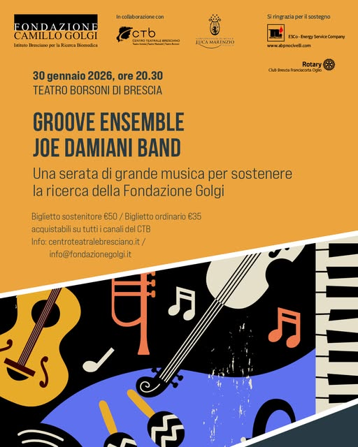 Ieri si è tenuta a Palazzo della Loggia la conferenza stampa relativa alla presentazione del concerto straordinario Groove ensemble. Joe Damiani band che venerdì 30 gennaio 2026 alle ore 20.30 presso il Teatro Renato Borsoni di Brescia. L’evento è stato ideato e organizzato a cura della Fondazione Camillo Golgi in collaborazione con Centro Teatrale Bresciano e il Conservatorio Luca Marenzio di Brescia. Una serata di grande musica per sostenere la ricerca di Fondazione Golgi, realizzata con il sostegno di ABP Nocivelli.