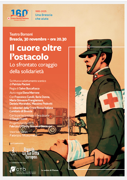 L’opera, scritta da Patrizio Pacioni per la regia di Salvo Buccafusca (coadiuvato da Elena Marrone) , è stata prodotta e allestita in collaborazione tra la sede bresciana della Croce Rossa Italiana, l’Associazione Le ombre di Platone e il C.T.B. Centro Teatrale Bresciano, uno dei più importanti player della prosa nazionale.